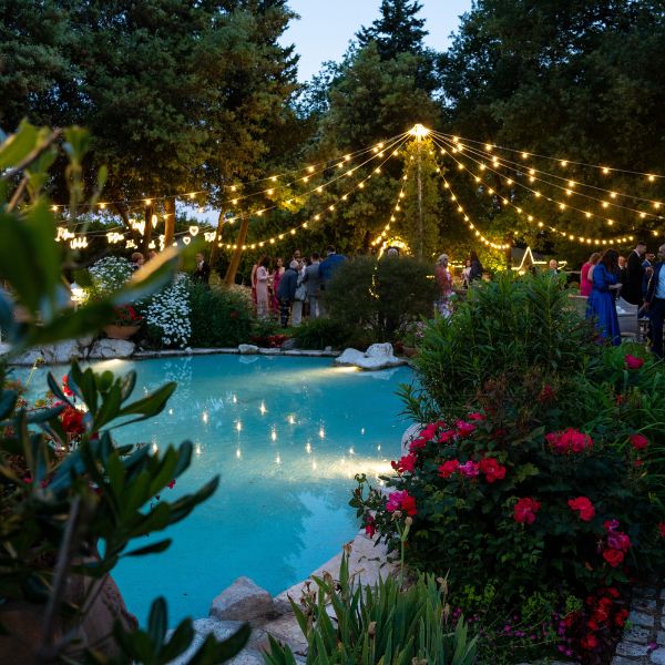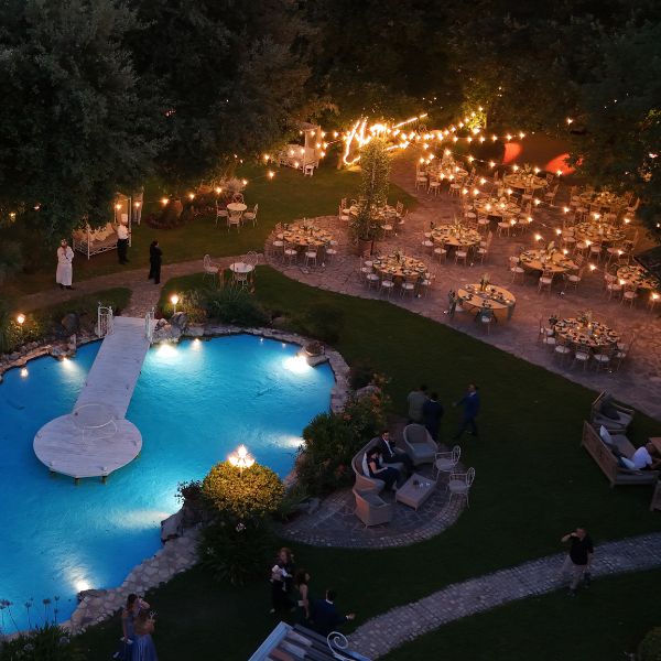 A fare da cornice a Villa Samuel c’è un parco incantato, che si estende per oltre 20.000 mq tra la vegetazione rigogliosa del Monte Maggiore e il fascino naturale delle colline casertane. Tutto racconta l’essenza della Villa: dalle querce secolari che raccontano il tempo, alla cascata scenografica che scorre accanto alla chiesetta, fino al pontile romantico dove spesso si celebra il momento magico del taglio della torta.